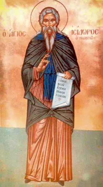 Saint Isidore of Pelusium was born in Egypt to a prominent Alexandrian family. He became an ascetic, and moved to a mountain near the city of Pelusium, in the tradition of the Desert Fathers. Following the example of St John Chrysostom, whom he had managed to see and hear during a trip to Constantinople, St Isidore devoted himself primarily to Christian preaching. Yet he writes in one letter, "It is more important to be proficient in good works than in golden-tongued preaching"